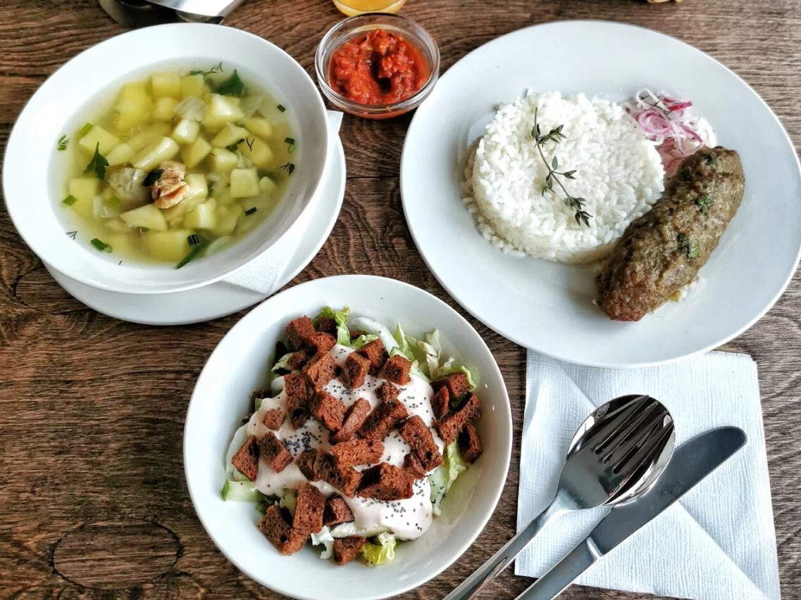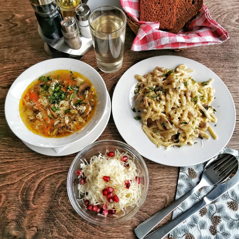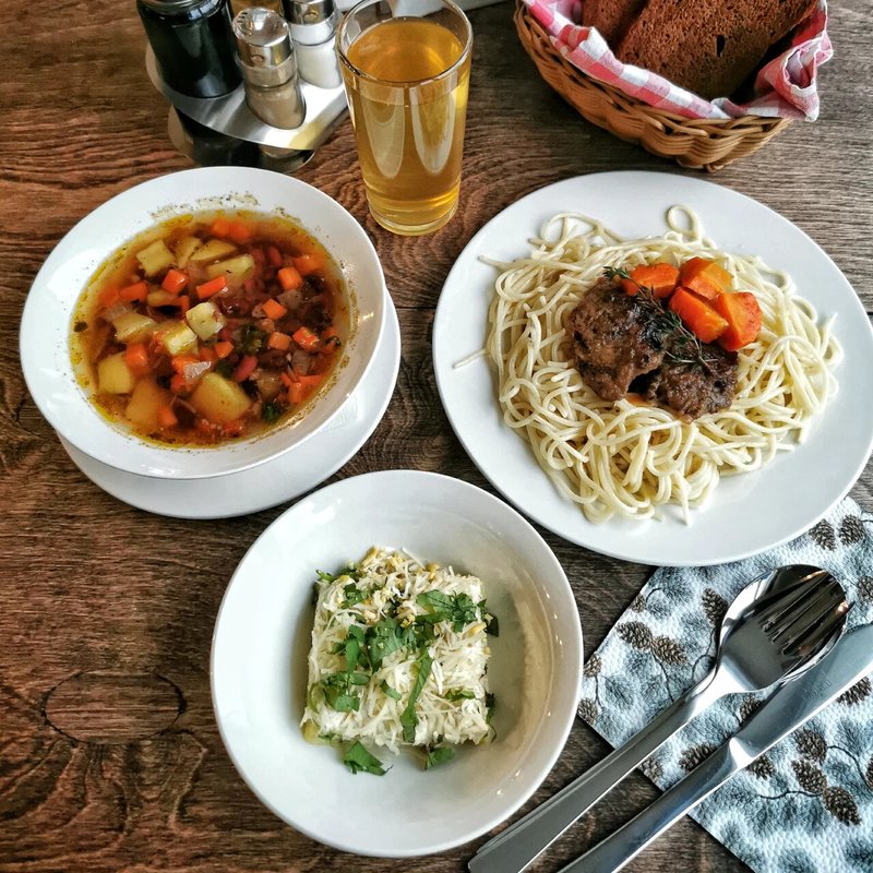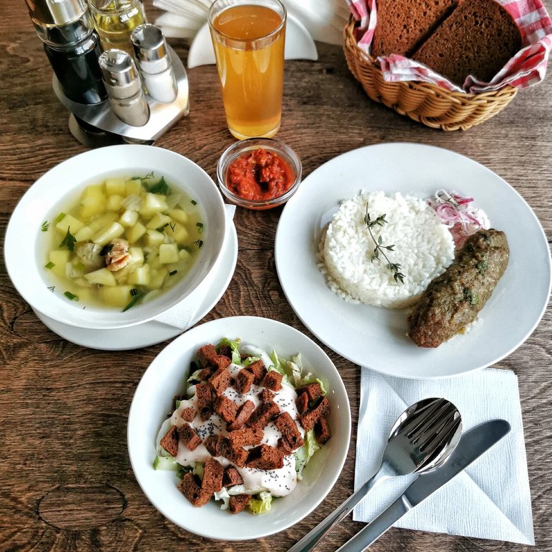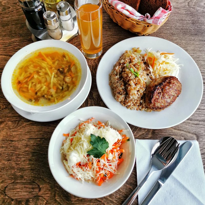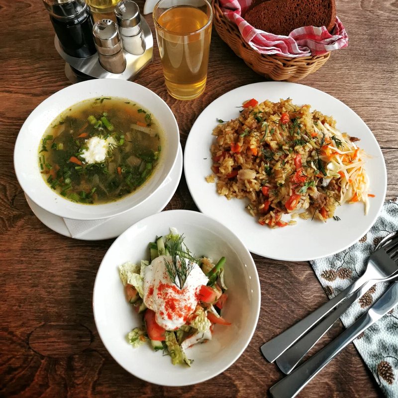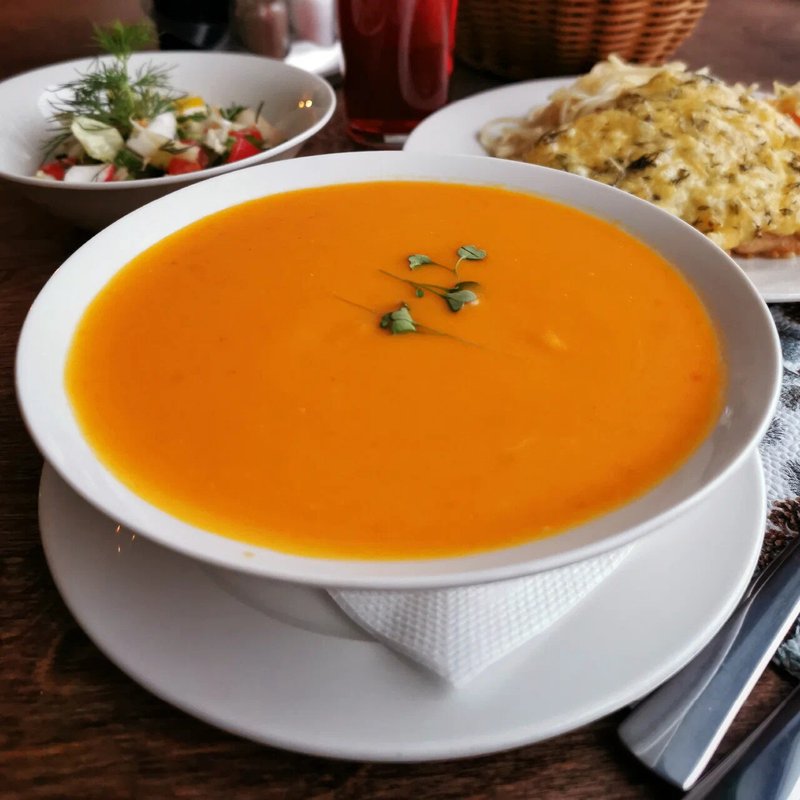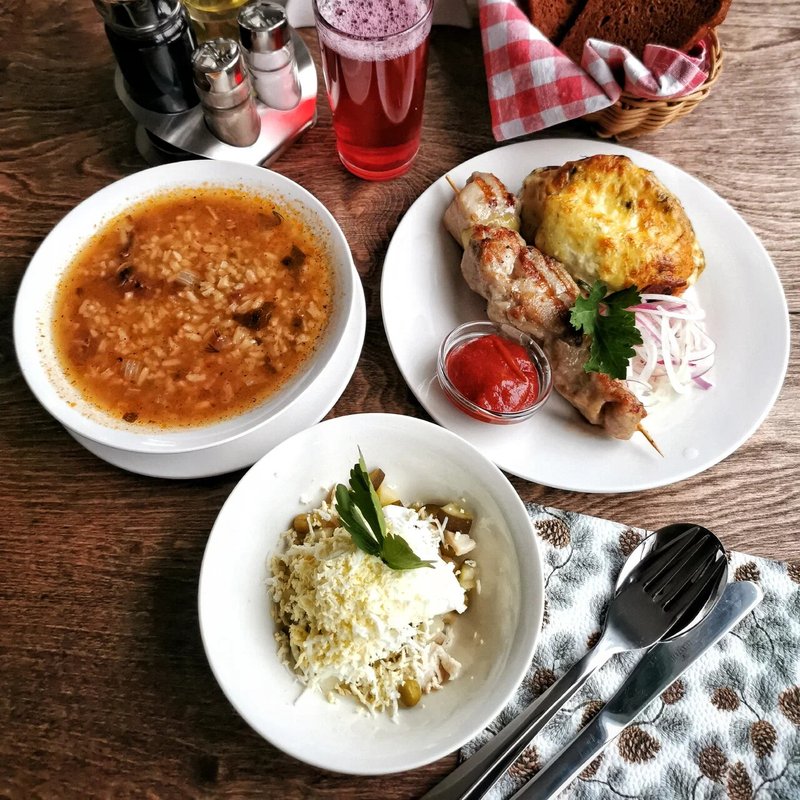 В нашем меню представлены блюда русской кухни. Завсегдатаи традиционного застолья, эти кулинарные творения предстанут с новой стороны. Чего только стоит выбор различных солений. Или закажите привычные супы, тушёные вторые блюда и выпечку к чаю.
